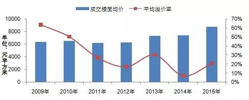 图:2009年至今杭州住宅类成交地块楼面均价及平均溢价率