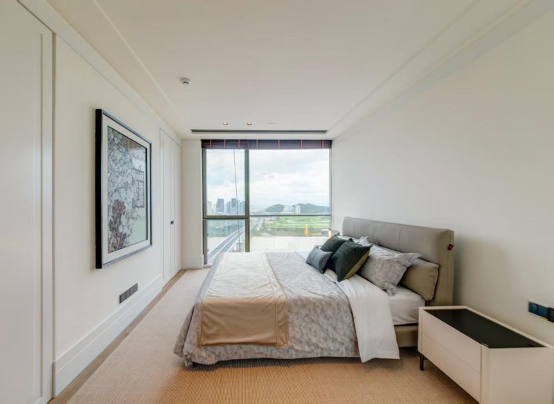 147㎡奢适平层:3.6米层高配合双面采光,营造通透空间感。一贯式餐客厅格局彰显大气尺度,灵活布局适配多元生活场景。超宽景观面同步收纳横琴生态与澳门都市图景。
