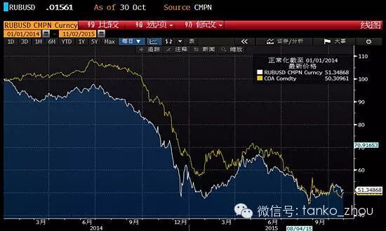 六、俄罗斯:油价暴跌下,俄罗斯经济陷入萎缩;卢布和油价亦步亦趋,何时能走出低迷阴影?